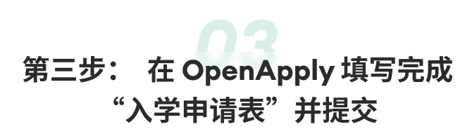 请点击“入学申请”选项,提交“入学申请表”,并创建OpenApply 账户。