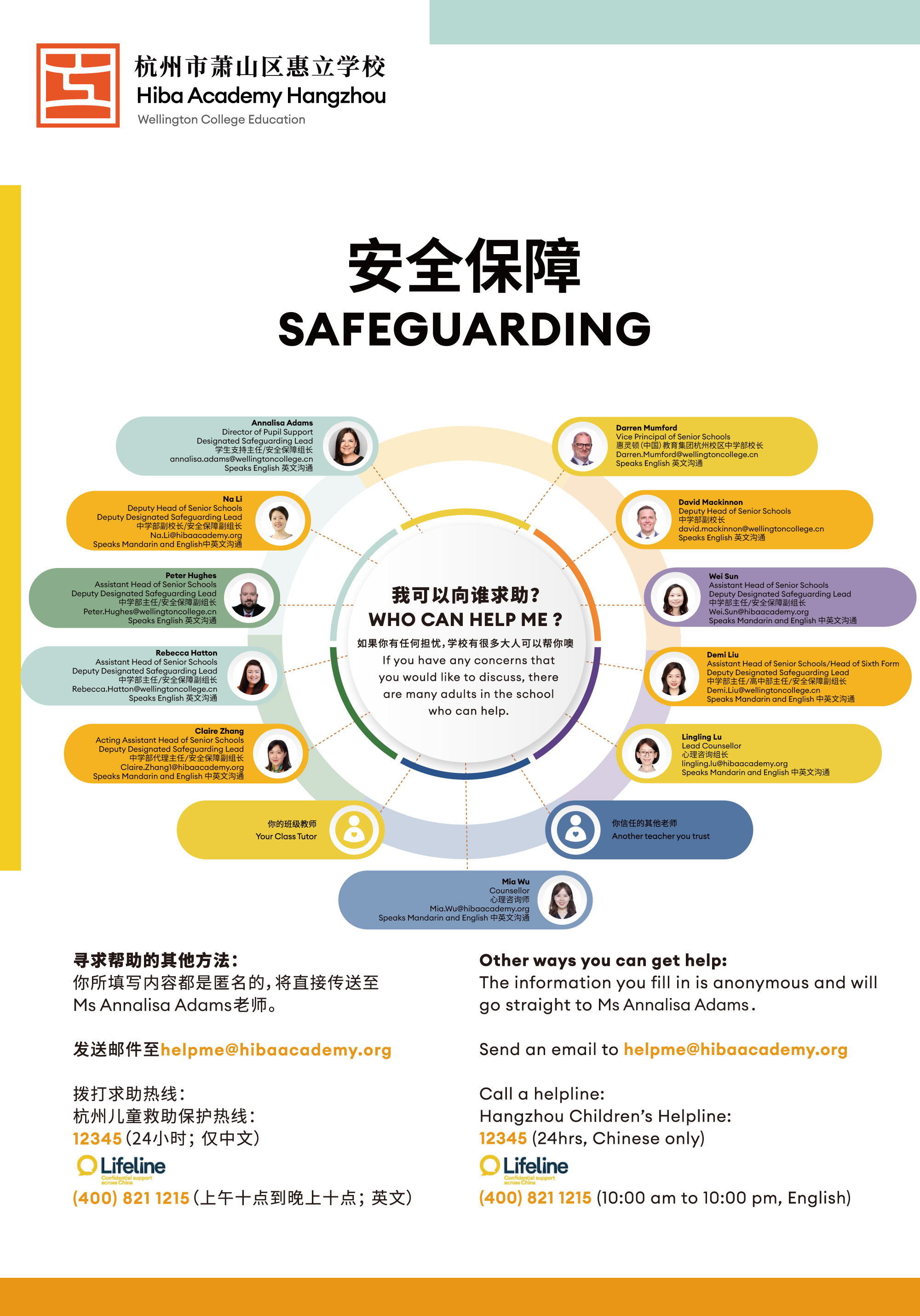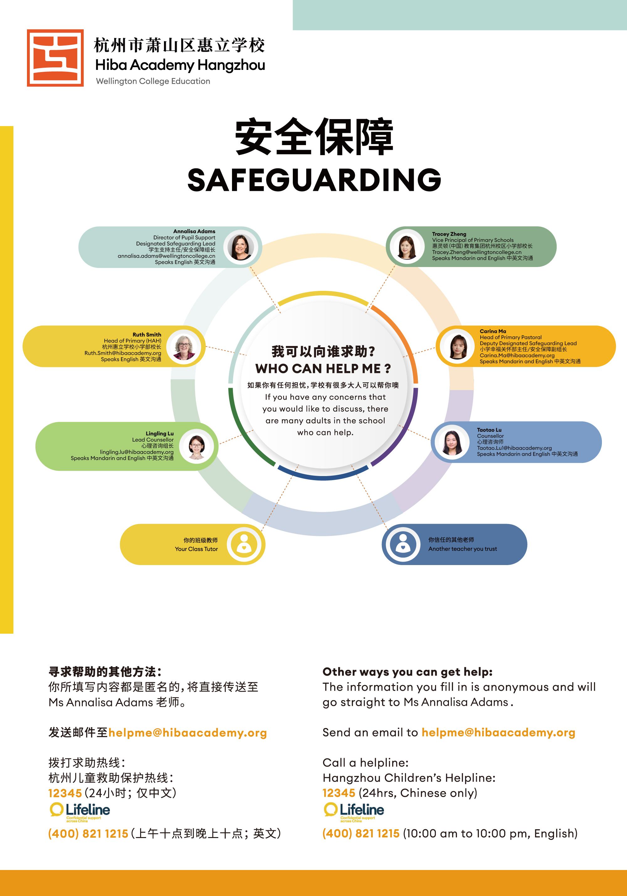杭州惠立学校有一支训练有素的指定安全保障主任团队,是所有安全保障相关问题的主要联系人,负责保持我校安全保障的实践符合世界标准。